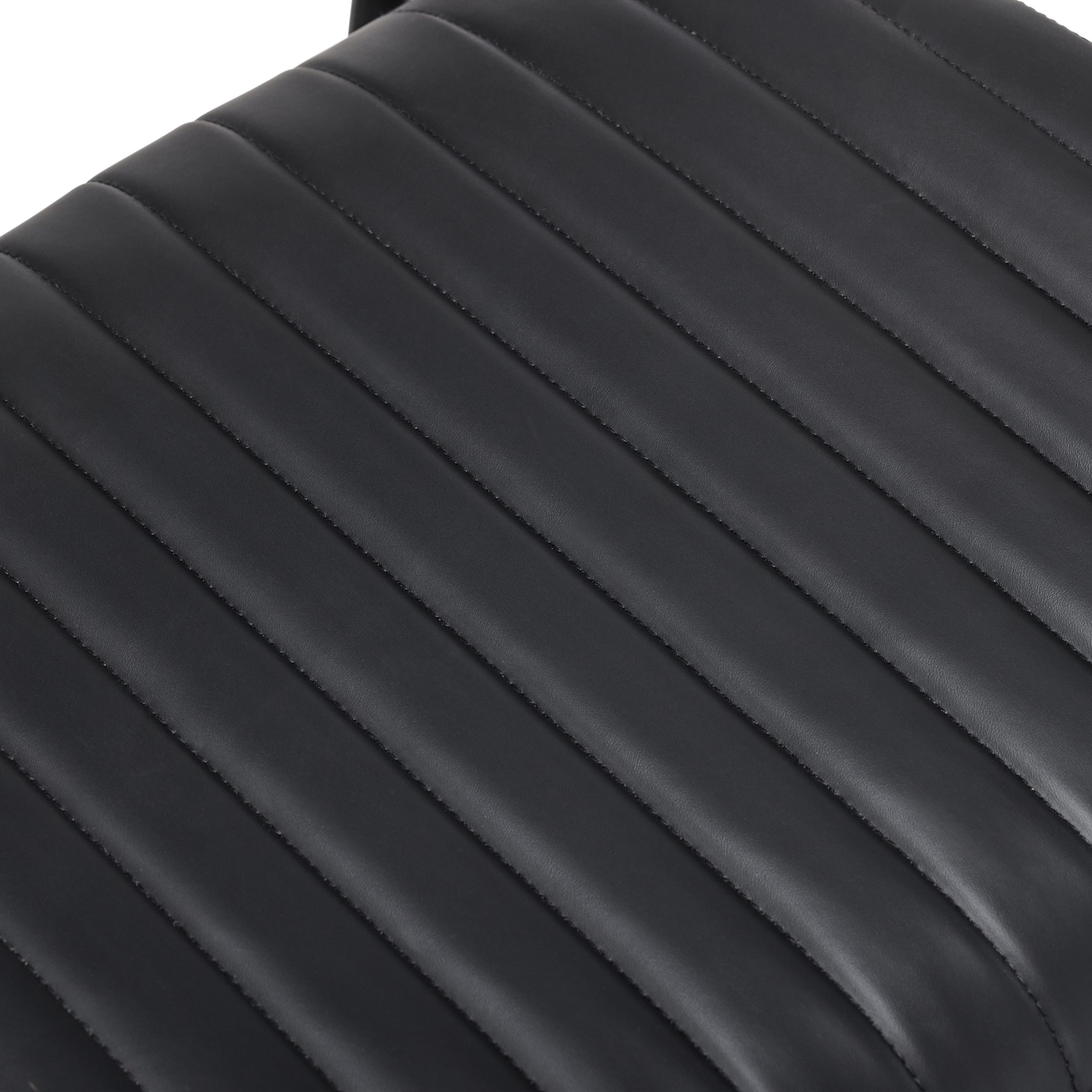 The value of this chair lies in its carefully selected materials. The seat and backrest feature rich, black, horizontally ribbed upholstery. Crucially, beneath the surface is generous, high-density foam. This superior padding ensures excellent guest comfort, which encourages longer stays. Premium faux leather covers this foam. Consequently, the upholstery offers both a luxurious aesthetic and exceptional resistance to spills and daily wear, simplifying maintenance for your teams.