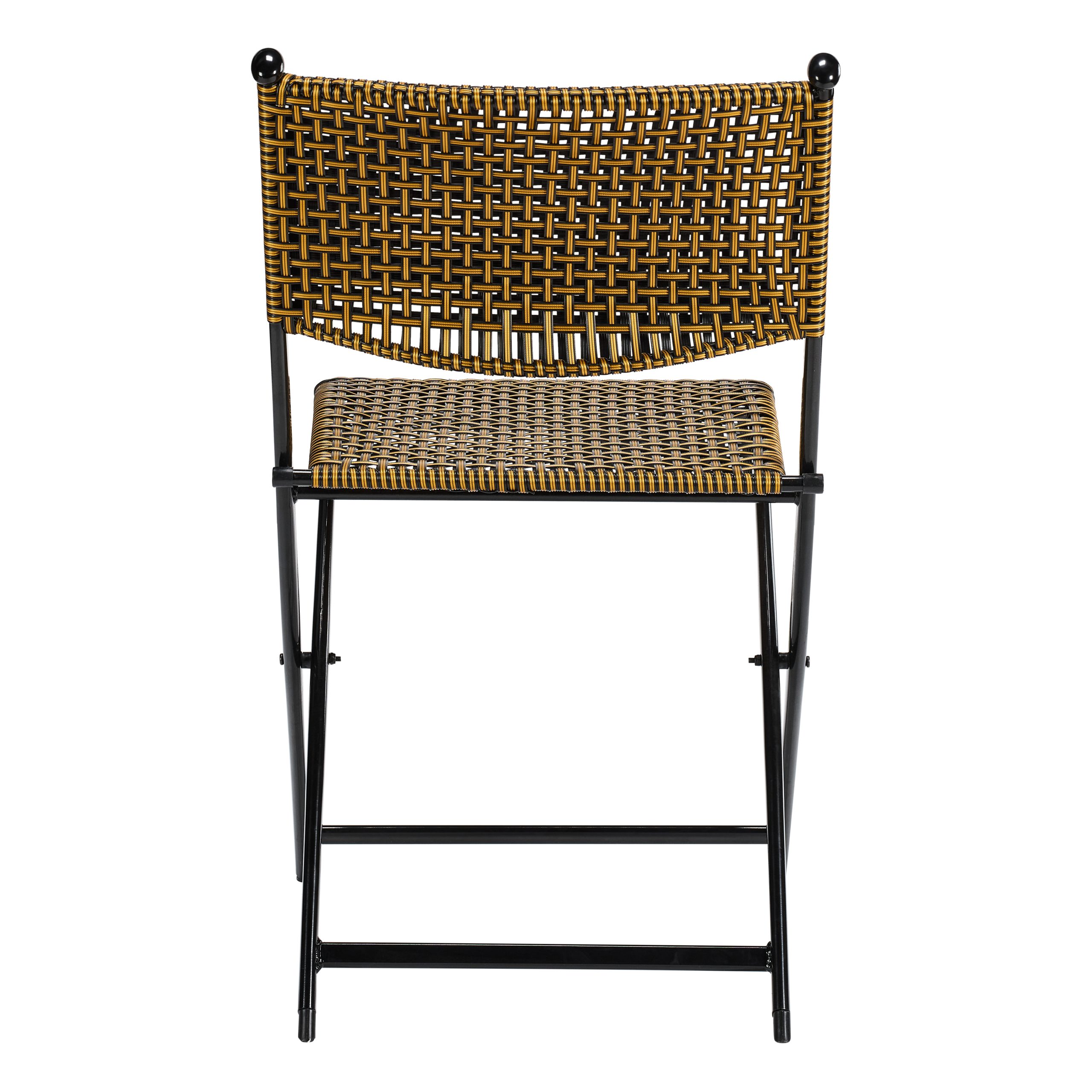 This foldable garden chair blends portability, comfort, and natural style, making it a smart choice for homes, gardens, and commercial spaces. The seat and backrest use a durable rattan‑style weave in warm brown and golden tones, creating a textured pattern that feels inviting and contemporary. The woven surface supports the body comfortably while allowing airflow, so the chair stays cool and pleasant to sit in during warm weather or long gatherings. Its handcrafted look adds character to any setting and brings a relaxed, earthy charm to modern décor.