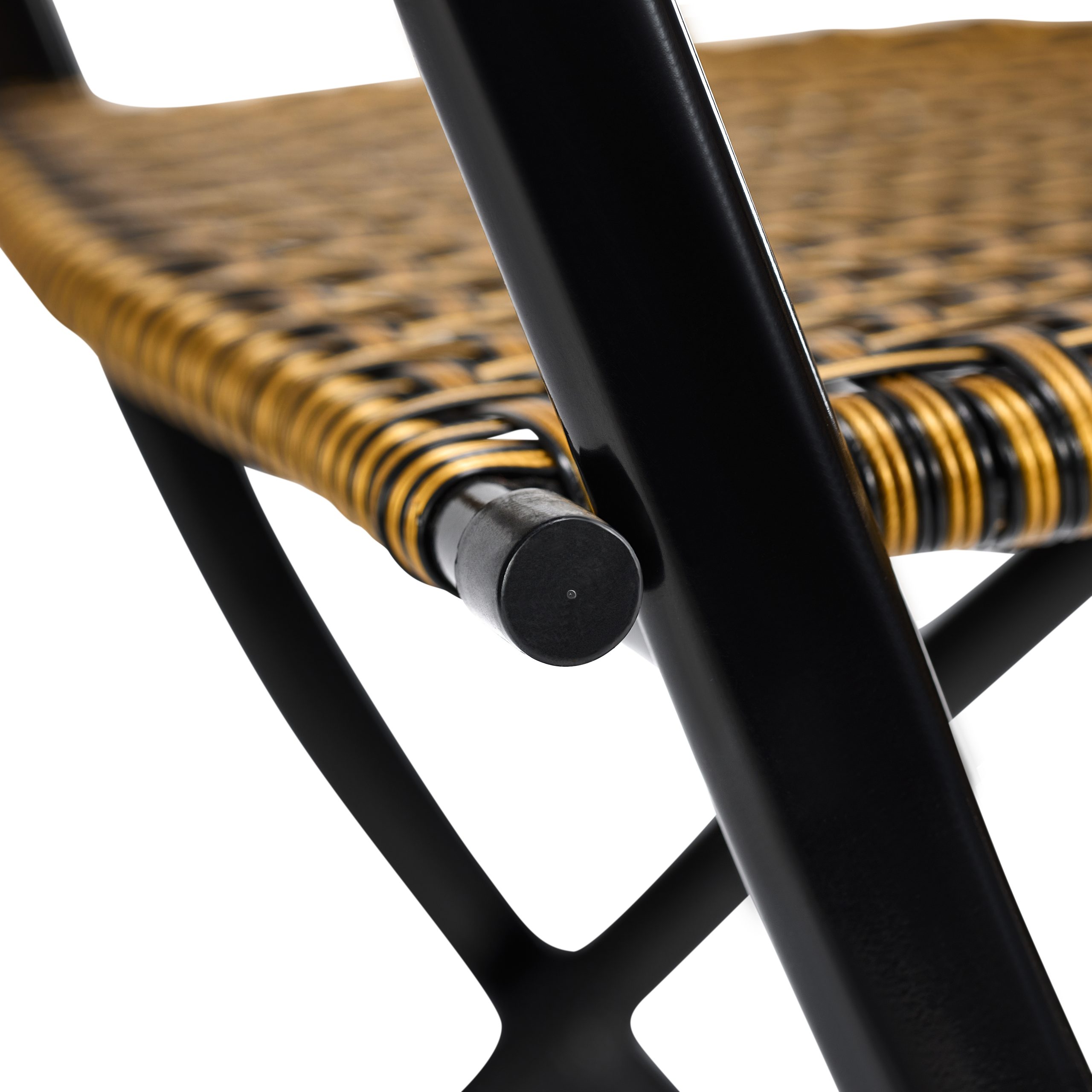 The black metal frame gives the chair strength without unnecessary weight. Its cross‑braced structure increases stability and ensures the chair feels secure on a variety of surfaces. Because the frame folds smoothly, you can store the chair quickly or move it between rooms, events, or outdoor areas with ease. This foldable garden chair makes it ideal for patios, balconies, gardens, cafés, studios, pop‑up markets, and compact living spaces where flexible seating is essential. Even with its lightweight design, the chair maintains a sturdy, dependable feel.